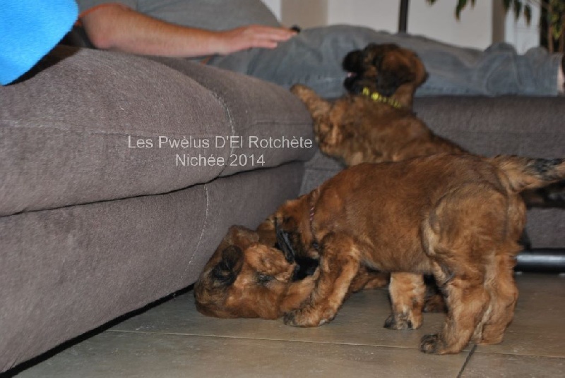 Nichée de Judy - 2014 Nous sommes contents que maman soit là pour nous rassurer Socialisation au bruit de la rue En haut : Nills, à gauche : Muscade, à droite : Nuts On reconnaît Kanelle par le port de ses lunettes Soirées mouvementées avec nos loulous Voici la petite chipie "Nell" On a trouvé un nouveau copain Par moment on monopolise toute la maison Muscade est jalouse de la queue du tigre Petite confidence entre frère et soeur Ho mais maman est là aussi Découverte de l'extérieur, nous avons 5 semaines Un peu de repos toujours bien mérité Et tout le monde s'amuse bien Chouette notre copain est là sommeil profond pour Nell et Nelson Nuts en plein somme Mais à la fin c'est la fête! Au début on est bien sage Tout le monde à table! Moi ça va, je ne suis pas trop mal là Fatigué j'aimerais rejoindre mon coin dodo Avec de belles périodes de jeux Nous devenons de vrais petits chiots Suivi d'un petit dessert servi par maman, pas de refus pour certains Notre premier repas de grand. Nous avons 3 bonnes semaines hé oui déjà Un câlin spécial et privilégié à trois Découverte de notre petit copain Mais c'est quand même mieux quand maman est là! Quand maman se repose on est content de se blottir contre nounours Nos yeux commencent à s'ouvrir doucement Déjà plus de 10 jours Et nos deux mecs A déjà 10 jours voici le quatro des filles Et me voilà, le petit dernier Et oui moi je suis né en cinquième position Je suis la quatrième et je fais place maintenant à mes frères Je suis la troisième Je suis née la deuxième Je suis née la première Petit repos bien mérité On a déjà très faim! Nous avons juste quelques heures
